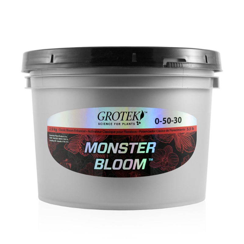 O Monster Bloom da Grotek é um fertilizante concentrado em pó, altamente eficaz, desenvolvido para maximizar a floração e a produção de frutos. É um dos suplementos mais utilizados mundialmente em culturas de alto rendimento devido à sua fórmula equilibrada de fósforo (P) e potássio (K).